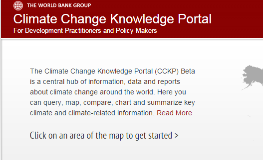 The Climate Change Knowledge Portal (CCKP) Beta is a central hub of information, data and reports about climate change around the world. The aim of the portal is to help provide development practitioners with a resource to explore, evaluate, synthesize, and learn about climate related vulnerabilities and risks at multiple levels of details.